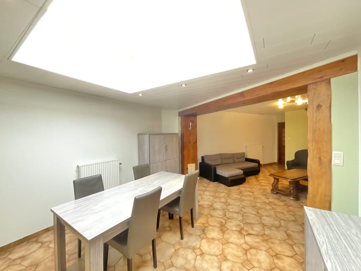 Maison deux façades avec jardin et possibilité de cinq chambres Cette maison deux façades présente une configuration intéressante et offre de beaux volumes. Les espaces de vie bénéficient d’une belle luminosité, notamment au niveau de la salle à manger grâce à un large puits de lumière avec coupole. La facilité de stationnement constitue un atout appréciable au quotidien. Le bien dispose également d’un jardin agréable et d’un potentiel d’aménagement supplémentaire, permettant d’envisager jusqu’à cinq chambres. La maison se compose comme suit : Au rez-de-chaussée : • Hall d’entrée, • Une première pièce polyvalente pouvant servir de bureau, salle de jeux ou chambre selon les besoins, • Un espace séjour spacieux et lumineux, • Une cuisine équipée, • Une salle de bain avec douche et WC, • Une buanderie, Au premier étage : • Hall de nuit, • Trois chambres, dont une plus spacieuse, Au grenier : • Grenier offrant la possibilité d’aménager deux grandes chambres supplémentaires. Extérieurs : • Terrasse, • Grand jardin, • Abri de jardin, • Potager. Aspects techniques : • Châssis PVC double vitrage, • Chauffage central au gaz, • Toiture principale entièrement neuve et isolée, • Toitures plates neuves et isolées, • Coupole neuve. Pour plus d’informations ou pour organiser une visite, contactez-moi : Matteo Carpenito (IPI 515 583) VENTE-IMMO +32 0475 25 45 45 +32 0498 33 82 23 ✉️ matteo@vente-immo.com